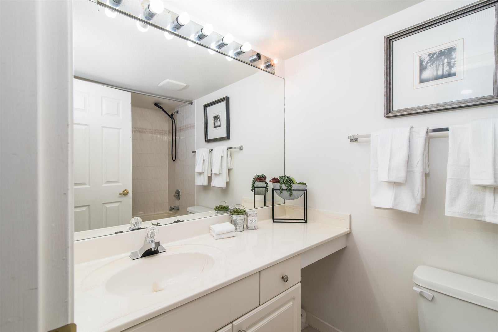 Opportunity Knocks! Large 1000+ sqft condo at a great price! Fabulous location close to EVERYTHING including skytrain station, SFU campus, shopping mall, rec center, parks & more! Spacious floorplan offers 2 bedrooms, 2 full bathrooms with new carpets in the bedroom. Just add your own fresh paint choices and it's move in ready! Located on the quiet side of the building and has 2 dedicated parking spaces + visitor parking that is gated. The condo is in mostly original condition but is bright, has in-suite laundry & a lovely north/east deck to relax on. Primary bedroom is large with double closets & 4 pc en-suite. Hard to find this generous sizing in more modern condos which makes it perfect for sharing and enjoying or investment. Low condo monthly condo fees, pets and rentals allowed!