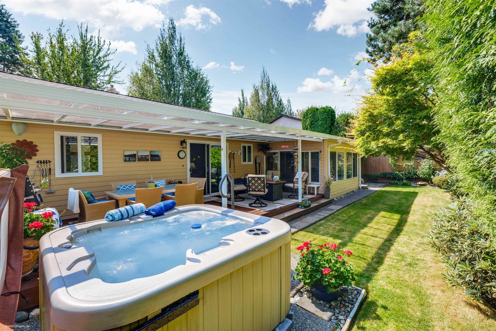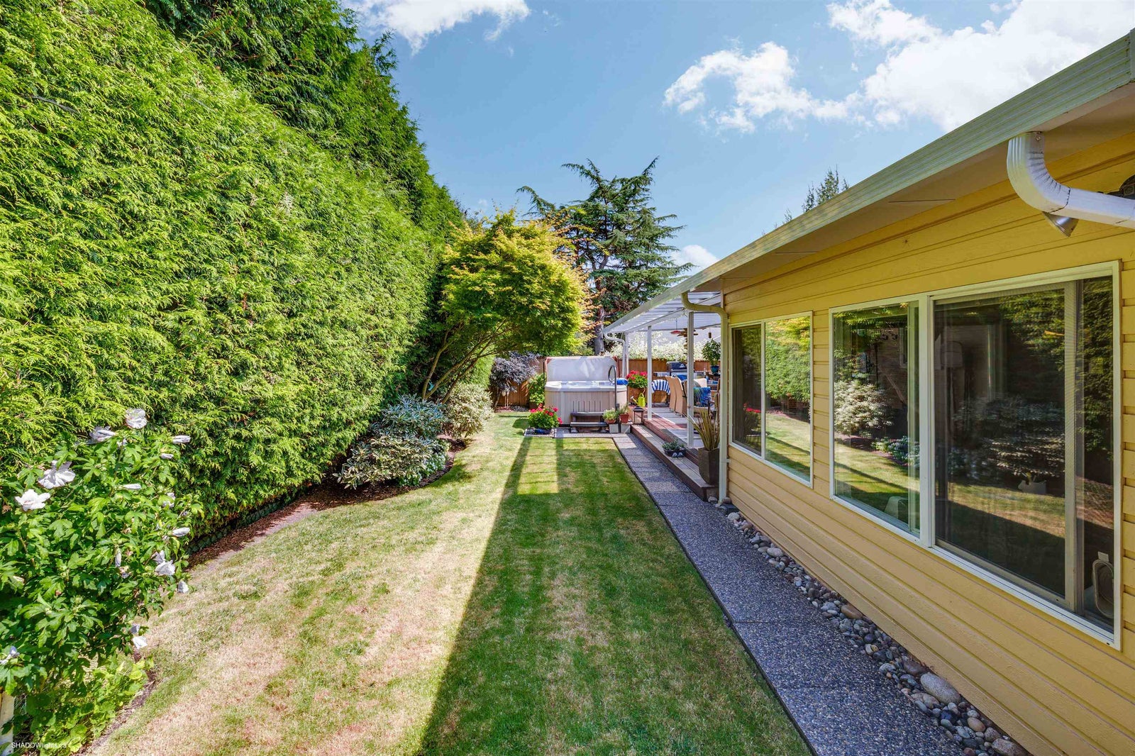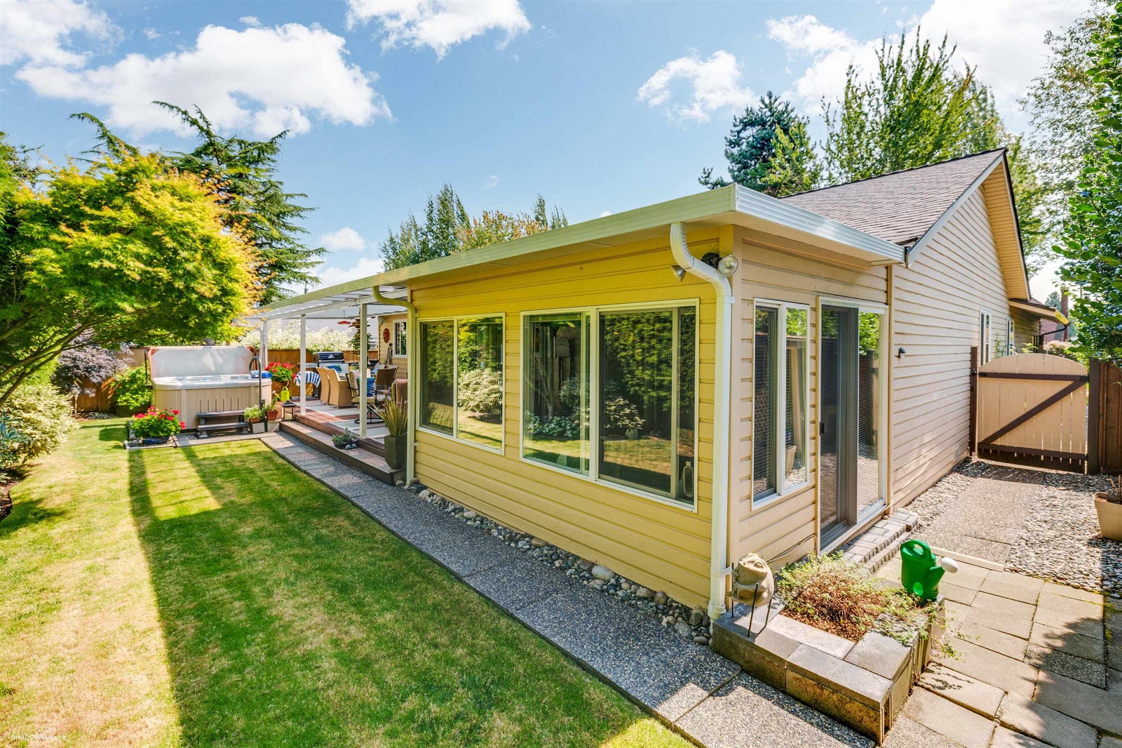 This immaculate, bright & very spacious 3 bedroom 2 full bath RANCHER is in a desirable & quiet area of South Surrey close to Meridian Elementary, parks & shopping. At just over 1700 sqft, the floorplan includes an at home office or sunroom + a great room concept including kitchen, eating area & family room with new stone faced gas fireplace. Sliding doors to a large deck with gas hookup & tinted glass roof makes a perfect gathering space for family/friends & full enjoyment of gardens, hot tub & fully landscaped yard. Numerous updates including brand new roof, newer Centra windows interior/exterior paint, kitchen countertops/backsplash & sidewalks/driveway. Level entry make this very wheelchair friendly making this an IDEAL family home or downsizers home. Double garage & loads of parking!