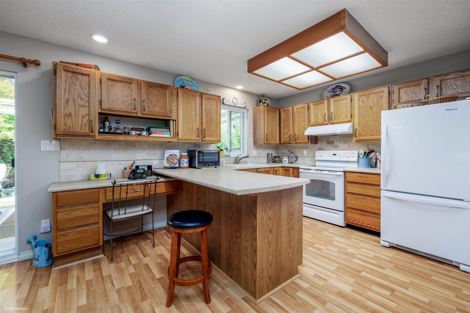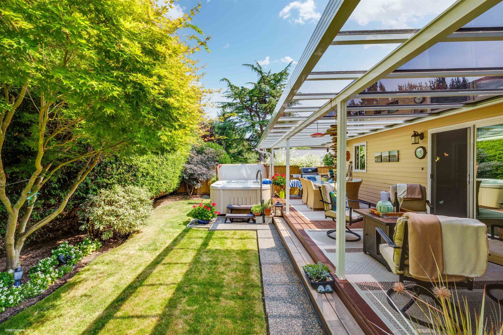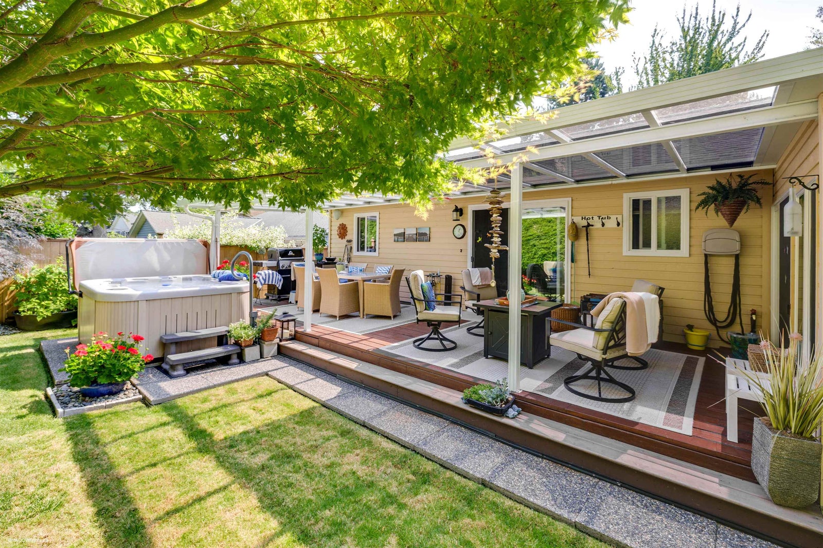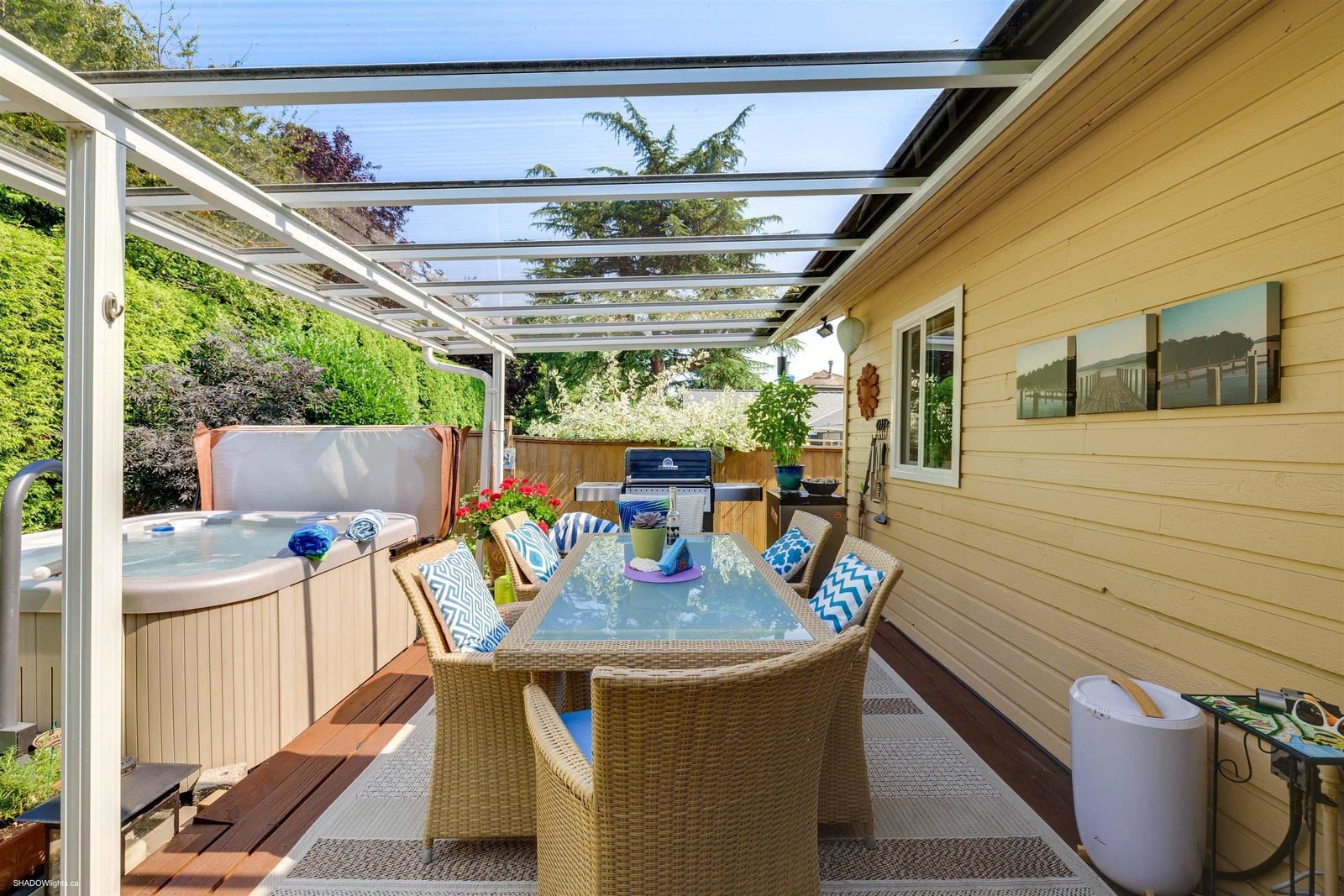 This immaculate, bright & very spacious 3 bedroom 2 full bath RANCHER is in a desirable & quiet area of South Surrey close to Meridian Elementary, parks & shopping. At just over 1700 sqft, the floorplan includes an at home office or sunroom + a great room concept including kitchen, eating area & family room with new stone faced gas fireplace. Sliding doors to a large deck with gas hookup & tinted glass roof makes a perfect gathering space for family/friends & full enjoyment of gardens, hot tub & fully landscaped yard. Numerous updates including brand new roof, newer Centra windows interior/exterior paint, kitchen countertops/backsplash & sidewalks/driveway. Level entry make this very wheelchair friendly making this an IDEAL family home or downsizers home. Double garage & loads of parking!