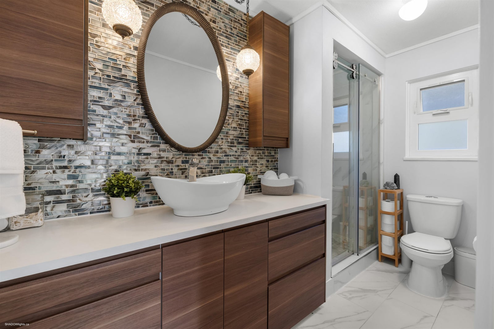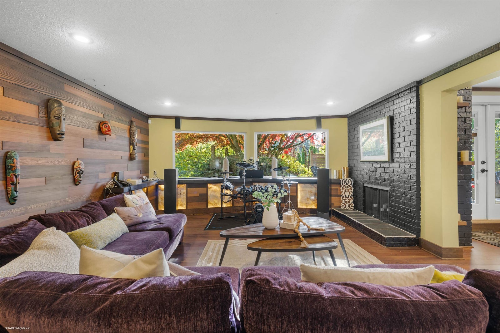 This beautifully maintained rancher with a full walkout basement sits on a rarely available 14210 sq.ft. private lot, surrounded by lush greenery and mature landscaping in Sunshine Hills. Renovate to include a mortgage helper or enjoy now with future development potential. With 3 bedrooms up and 2 down, the vaulted ceilings and large windows in the livingroom offer peaceful views of the park-like backyard. Perfect for families and entertainers alike, the home uniquely features two driveways- lots of room for your RV/ boat. Step outside to your own backyard OASIS — complete with a charming gazebo, ideal for outdoor gatherings, a pond and an abundance of fruit trees and berry bushes. Close to Sunshine Hills Elementary and Seaquam with parks, buses and shopping nearby.