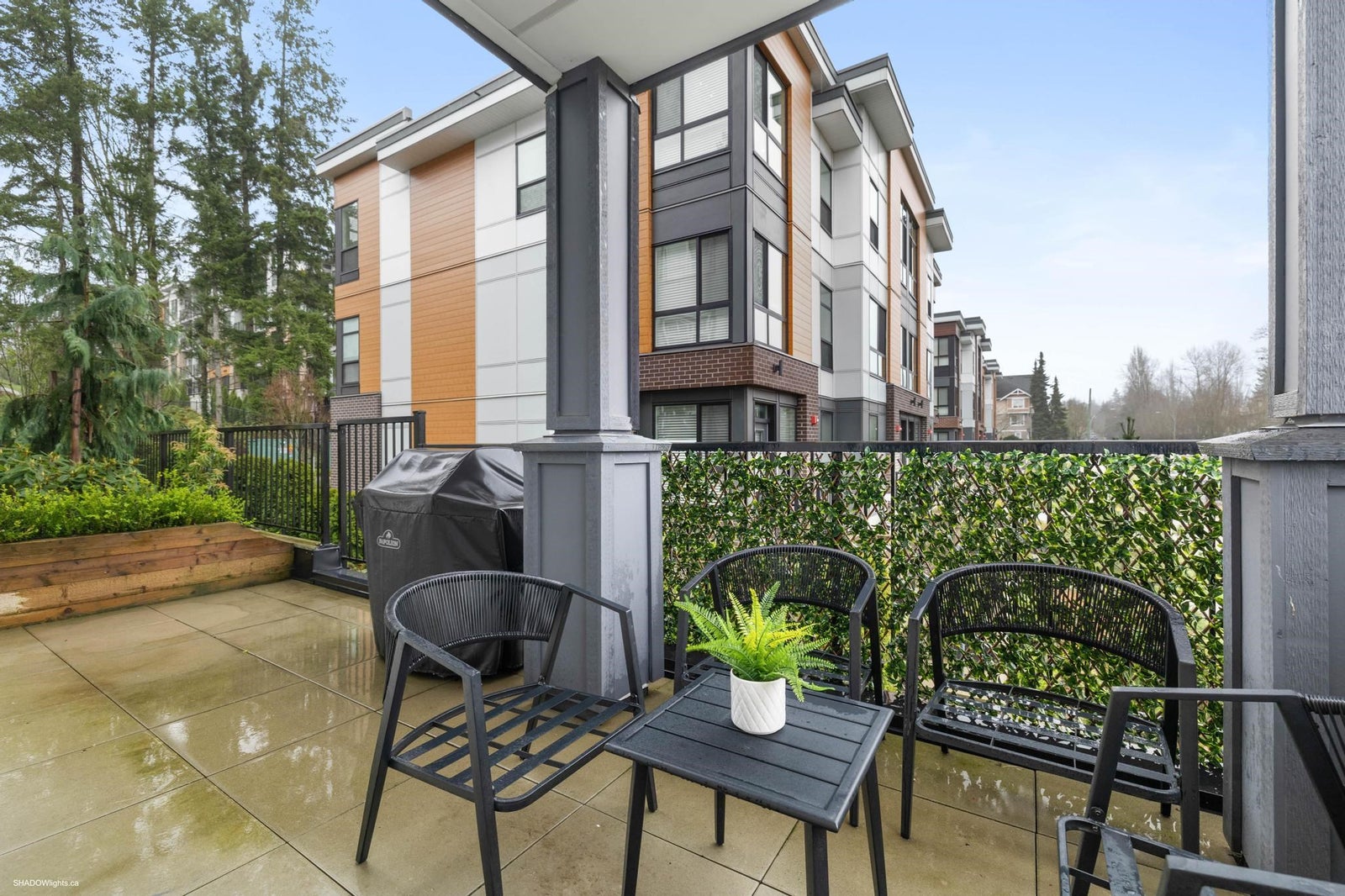 Welcome to this charming 2 bed + 1 bath home at Arora Court! The open kitchen concept features stunning quartz countertops + stainless steel appliances, creating a perfect space for culinary adventures. An inviting open living + dining room allows for effortless entertaining + family gatherings. The primary bdrm boasts a spacious layout, large closet + organizers. One wall shared w/neighbouring unit - very quiet! The full bathroom includes a relaxing tub for unwinding. Enjoy the convenience of in-suite laundry, a designated parking spot & storage unit conveniently located on the same floor as the unit. Pets are welcome, the large patio provides a fantastic area for them to roam & play, making this home a perfect blend of style and functionality. Close to shopping & Langley Event Centre.