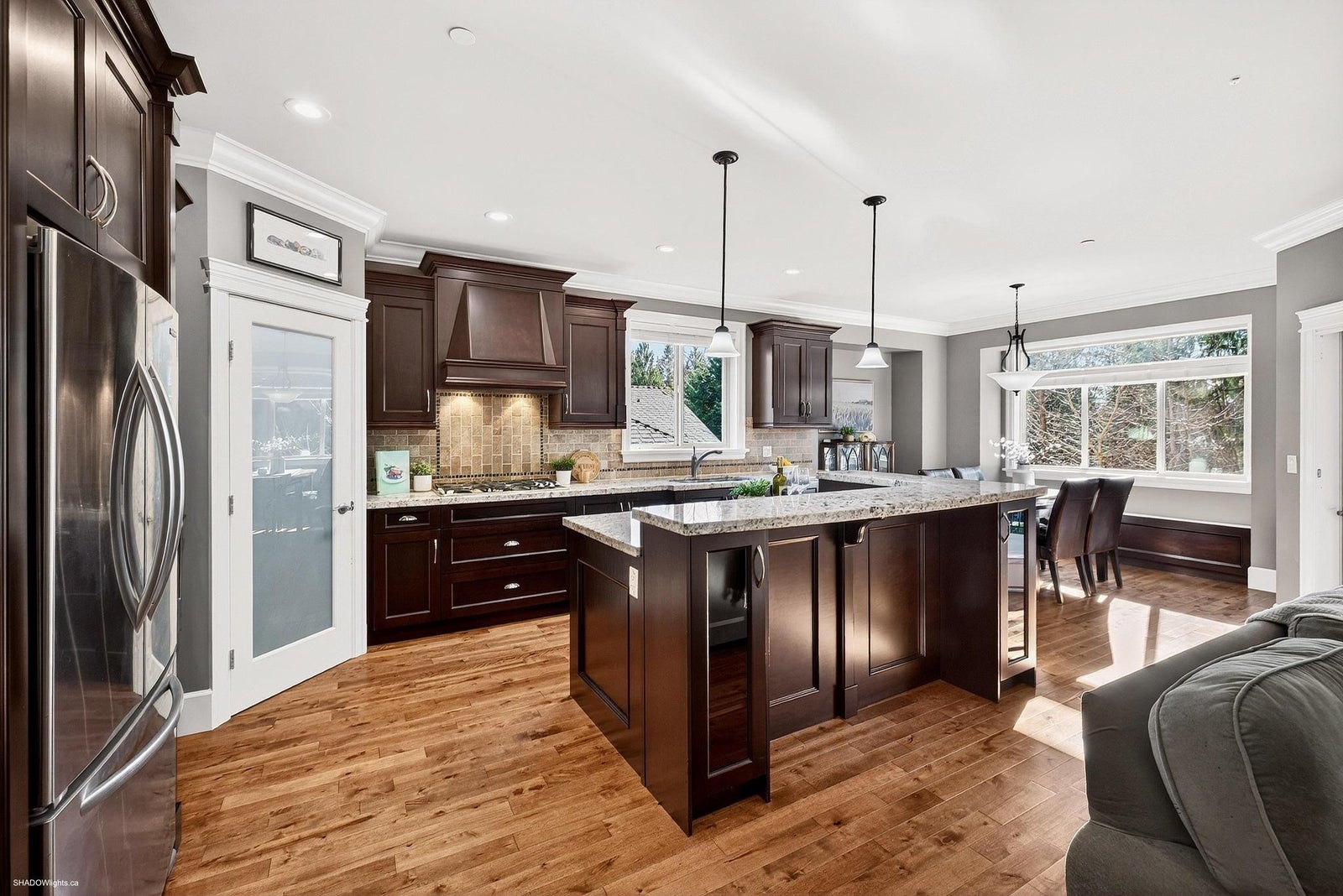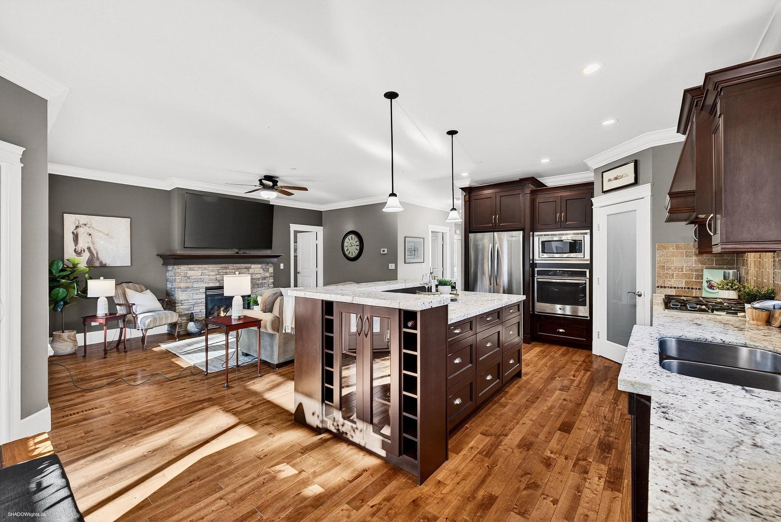 Custom designed, open concept 3200+ sqft executive rancher with full walkout sunshine basement in Rock Point. Unique layout catering to someone looking for an executive primary suite on the main floor with 5 pc en-suite and open concept living with family room off the kitchen & formal dining that could work well as a home office or flex room. The basement adds an additional 3 spacious bedrooms and huge games room that can easily be converted to a suite. Features include; 9ft ceilings, hardwood flooring, ensuite with heated floors, 200 amp service, A/C, gas BBQ hookup, loads or parking & XL deck overlooking beautiful landscaped yard. This one caters to a mature family looking for extra space for extended family or potential mortgage helper! Minutes to Golden Ears Park & Alouette Lake!