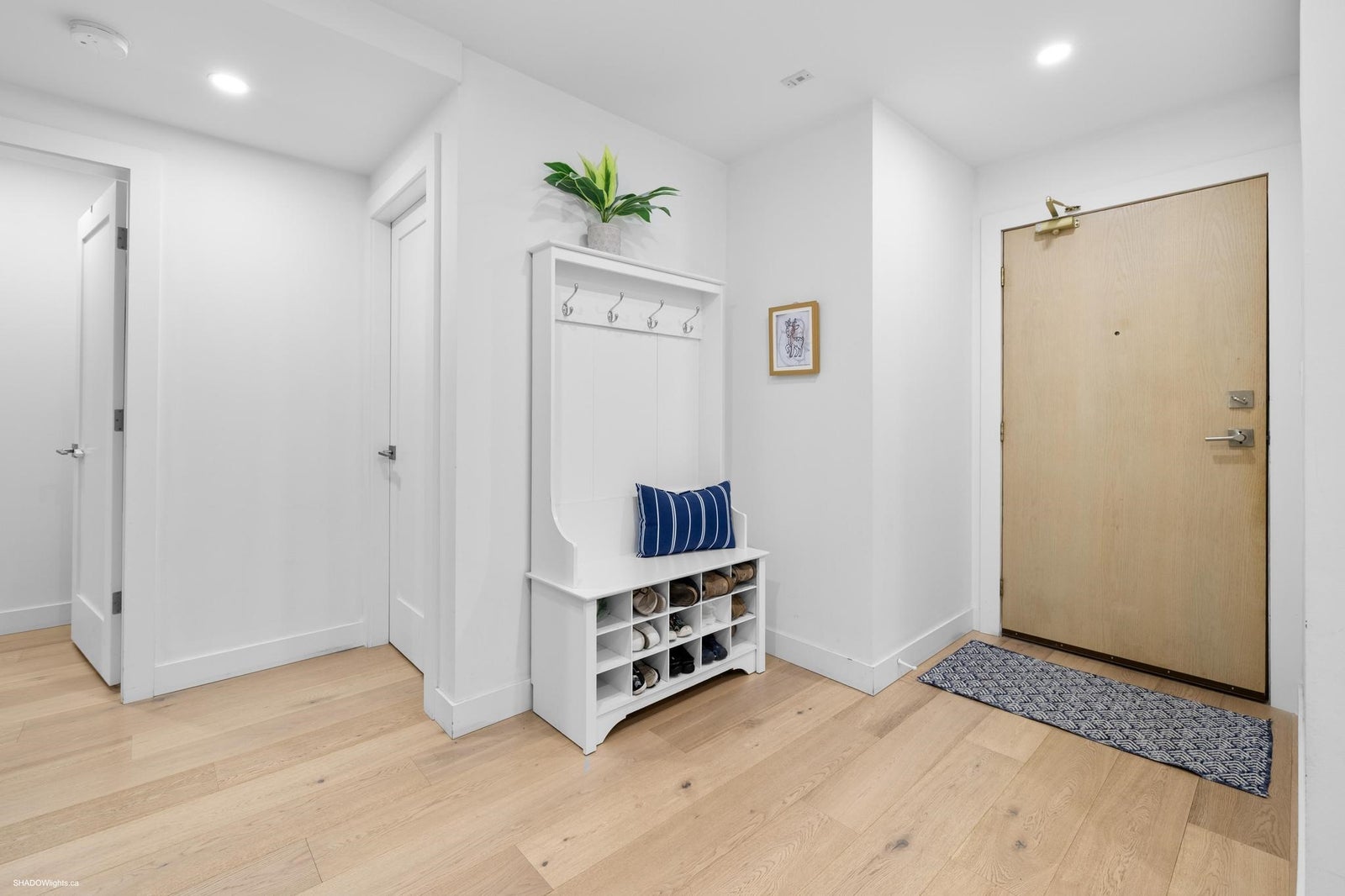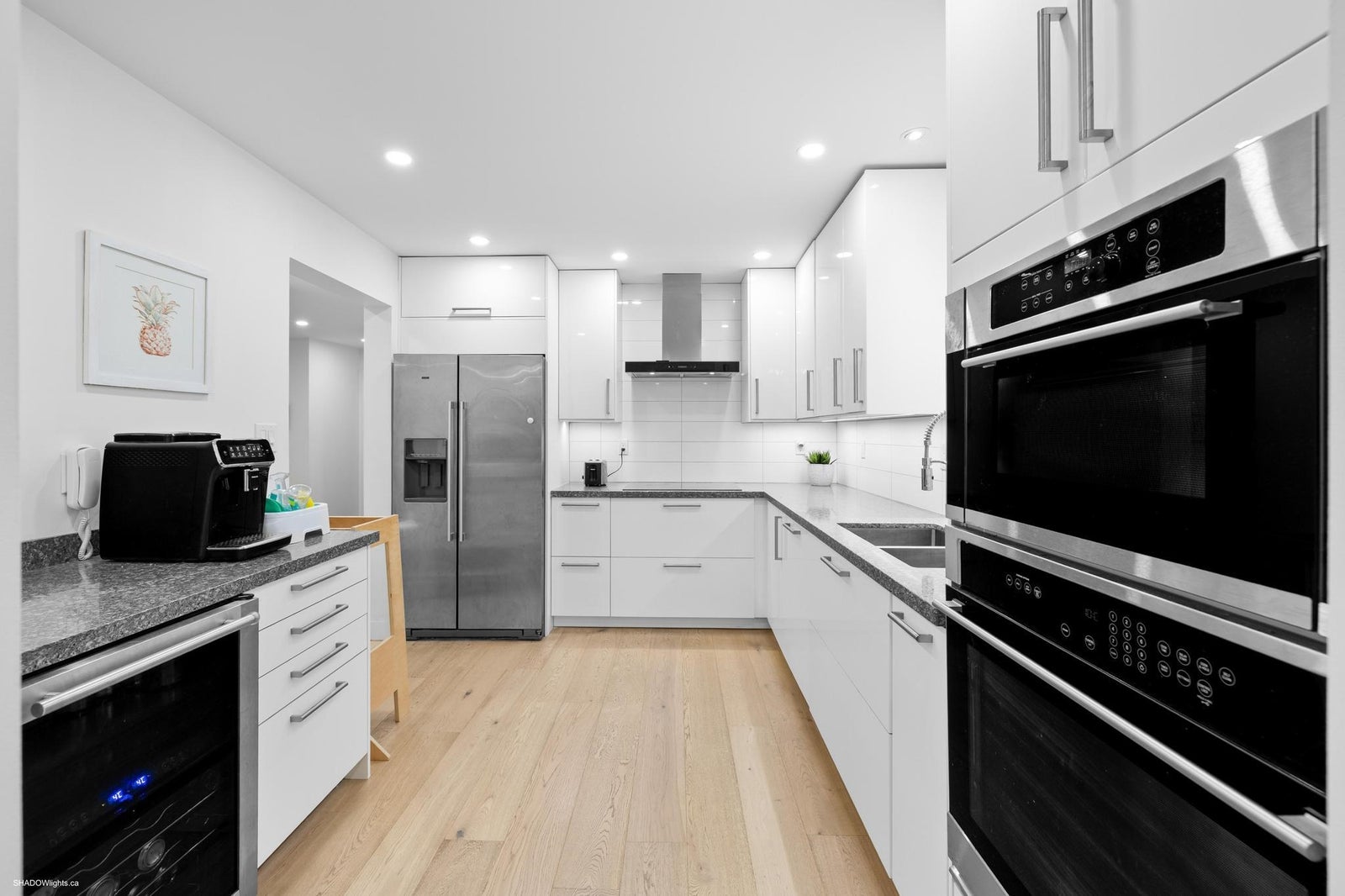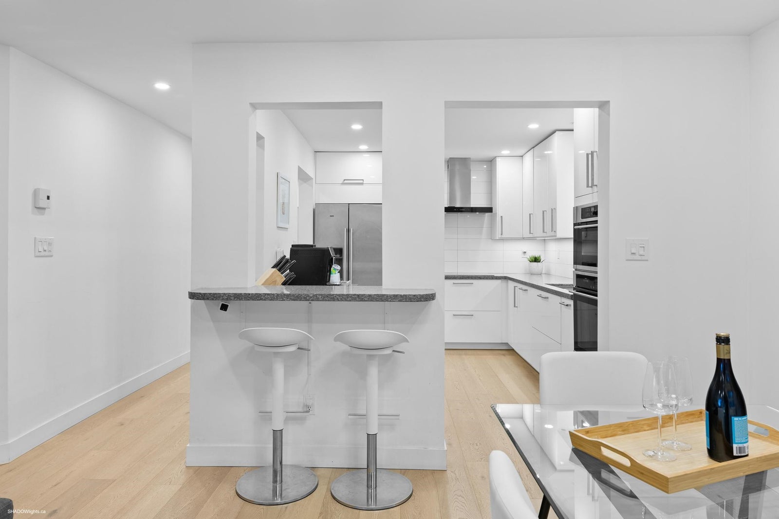 Picturesque Quay views!This stunning, fully renovated view condo showcases impeccable craftsmanship and upscale finishes throughout. Featuring wide plank oak hardwood floors, a sleek Euro-inspired chef’s kitchen with stainless steel appliances, induction range, and wine fridge. Enjoy designer lighting with dimmers, a modern linear fireplace, and spa-like bathrooms with heated floors, rain shower, and body jets. Complete electrical and plumbing upgrades with permits. Rain-screened, well-cared-for building offering 2 lockers and pet-friendly living. Just steps to the boardwalk, shops, restaurants, and SkyTrain. Truly a showstopper!