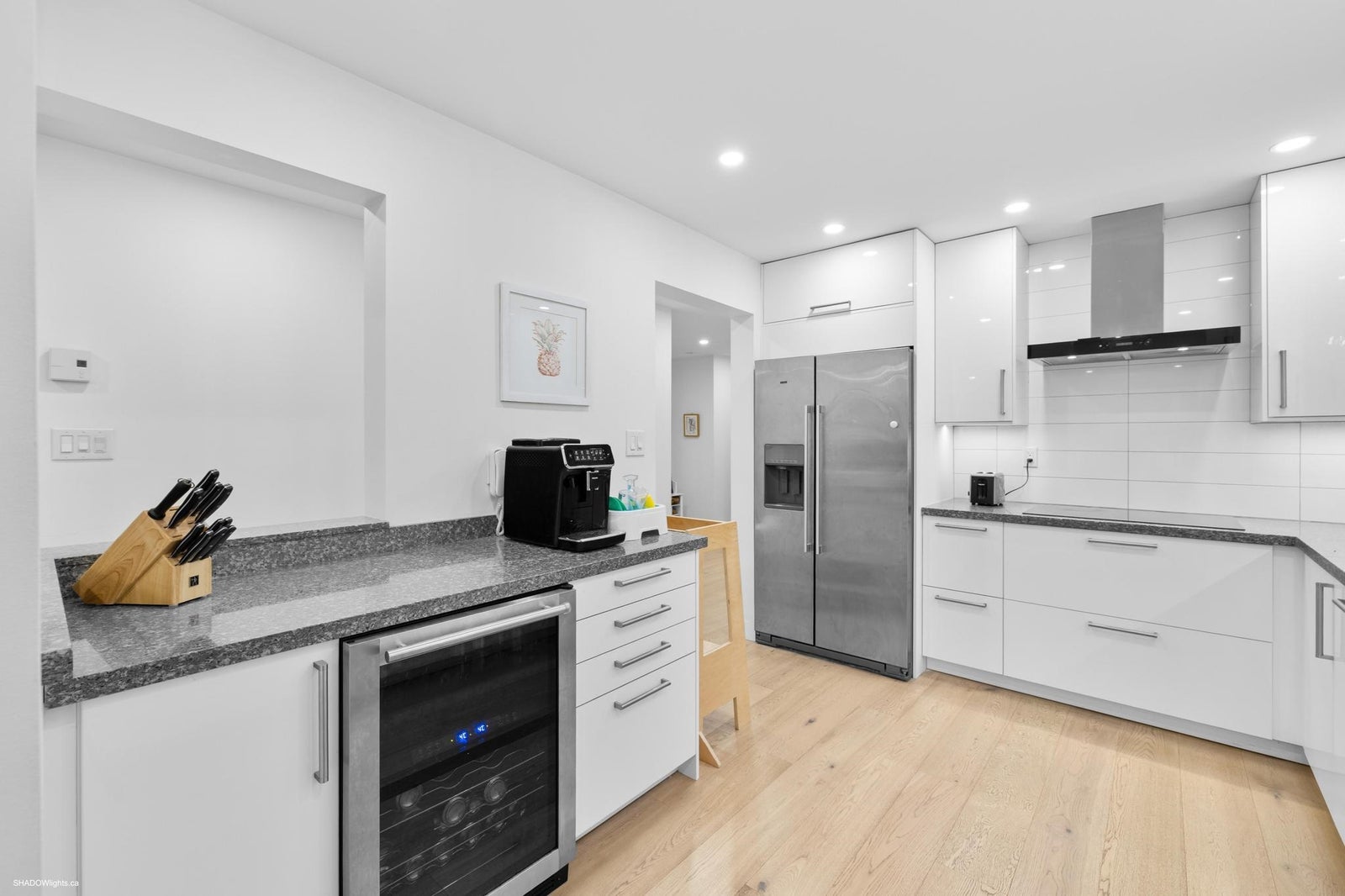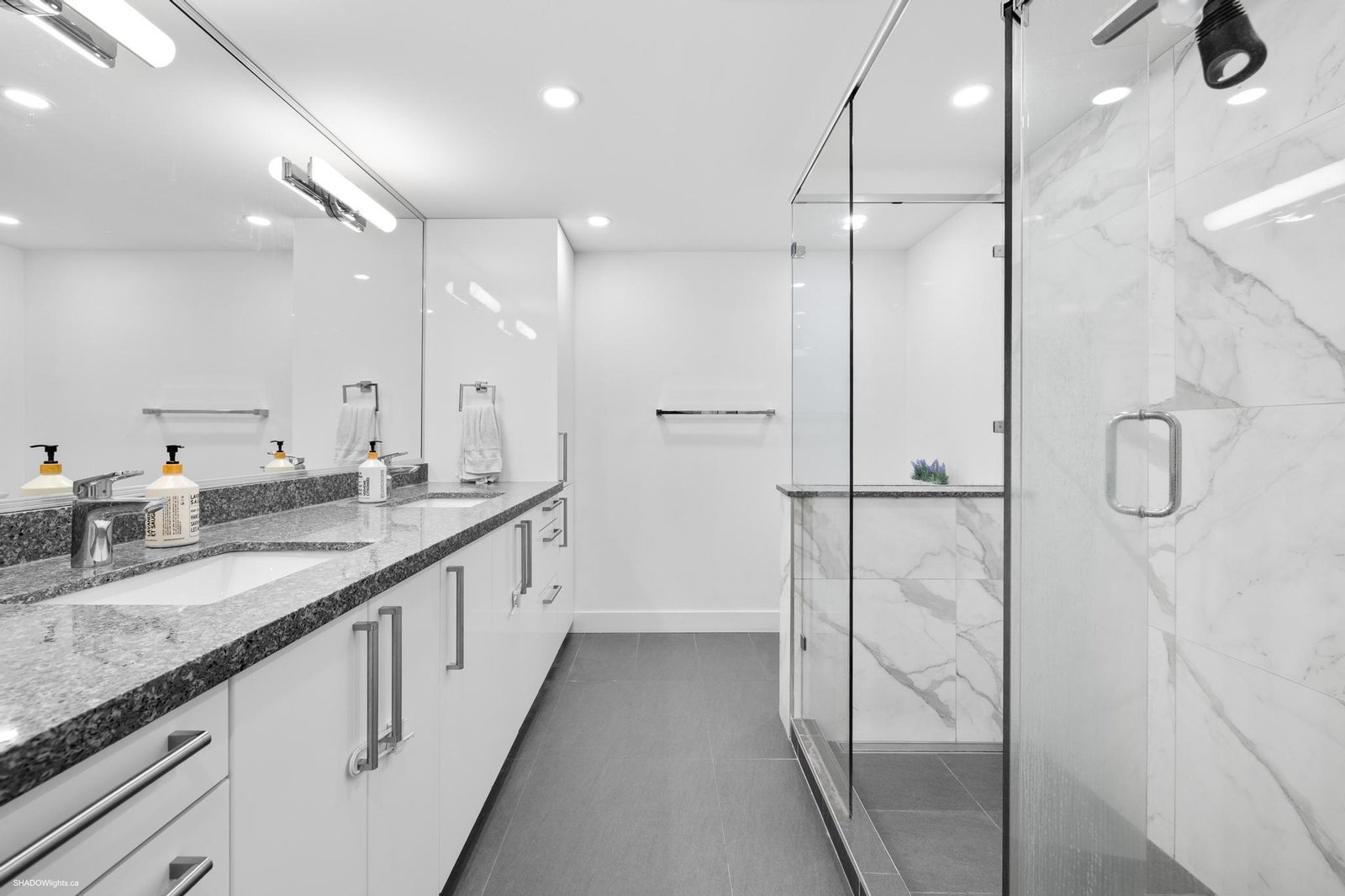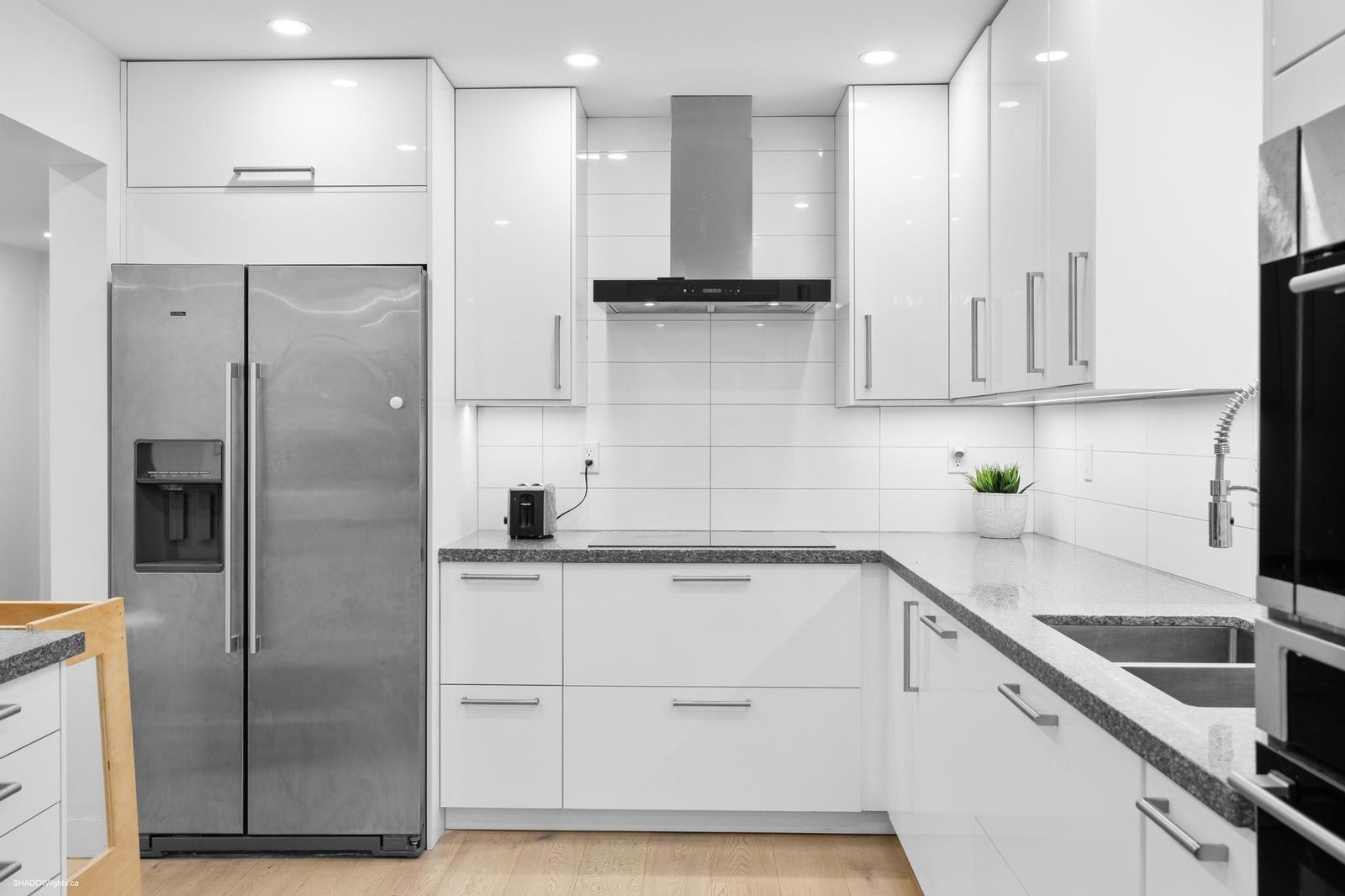 Picturesque Quay views!This stunning, fully renovated view condo showcases impeccable craftsmanship and upscale finishes throughout. Featuring wide plank oak hardwood floors, a sleek Euro-inspired chef’s kitchen with stainless steel appliances, induction range, and wine fridge. Enjoy designer lighting with dimmers, a modern linear fireplace, and spa-like bathrooms with heated floors, rain shower, and body jets. Complete electrical and plumbing upgrades with permits. Rain-screened, well-cared-for building offering 2 lockers and pet-friendly living. Just steps to the boardwalk, shops, restaurants, and SkyTrain. Truly a showstopper!